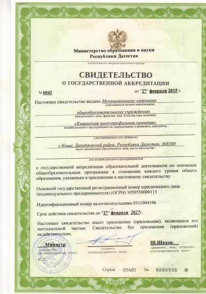 Полное наименование образовательной организации* Муниципальное казенное общеобразовательное учреждение "Кищинская многопрофильная гимназия имени Руслана Исаева"